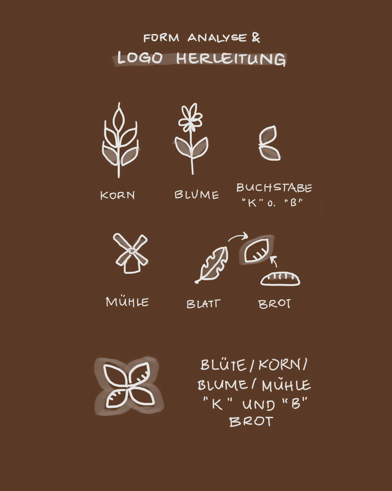 Die Geometrie spielt dezent mit den Buchstaben K & B (KornBlume), die an der Mittelachse gespiegelt wurden.