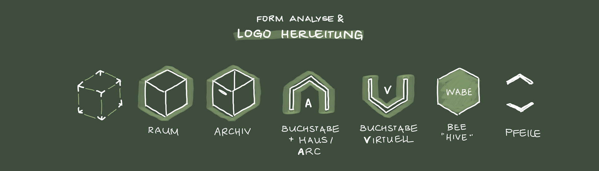 Das Signet ist ein typografisches Chamäleon. In der Geometrie verbirgt sich der Buchstabe "A", der die Form eines klassischen Satteldach-Hauses (Architektur) und gleichzeitig die Initiale von „Archive“ versteckt. Der Buchstabe "V" ist ebenso enthalten, als Referenz zur "Virtual Experience". Gemeinsam ergeben das "A" und das "V" das Hexagon in der Mitte.