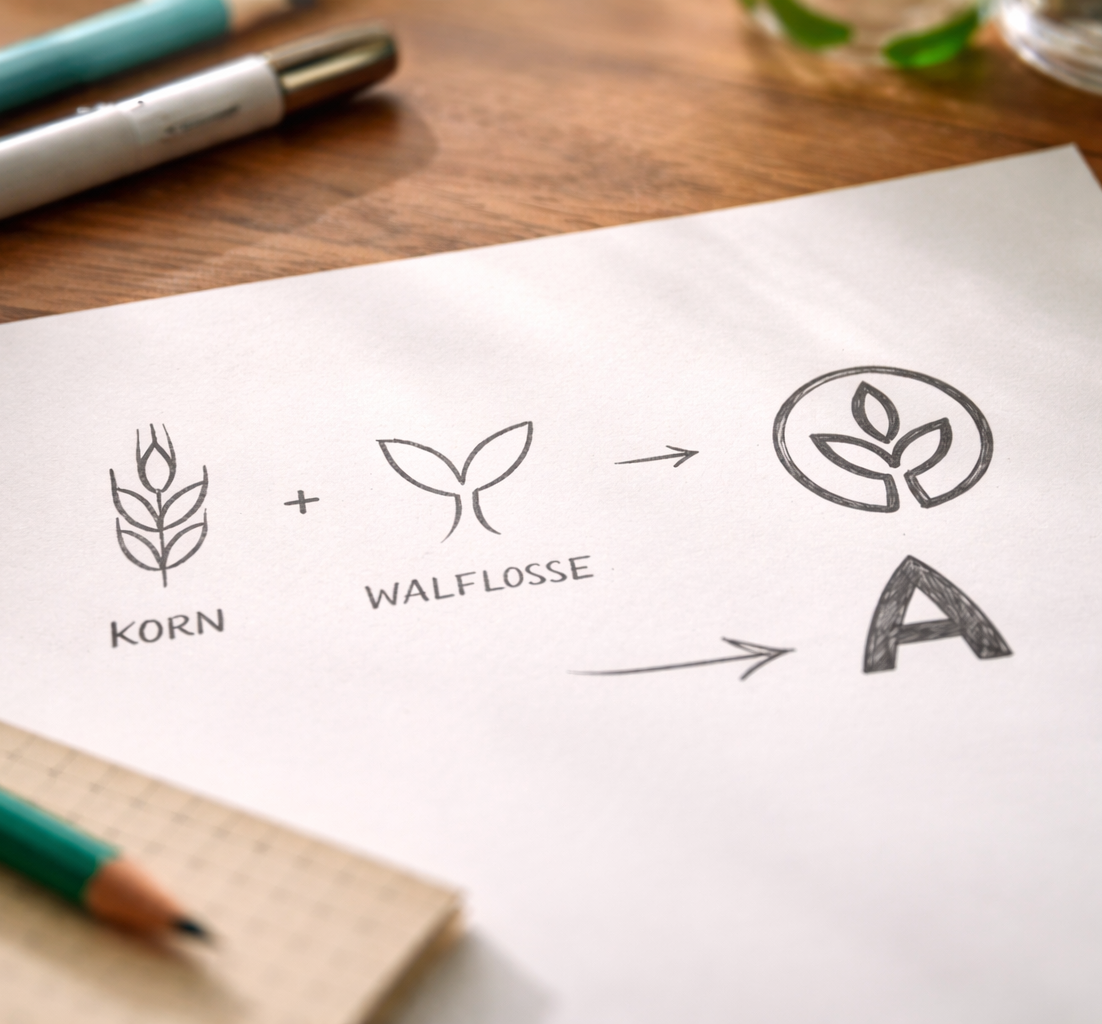 Die Bildmarke entstand aus einer Serie von Analog-Skizzen, um eine zeitlose und eigenständige Formensprache zu finden.